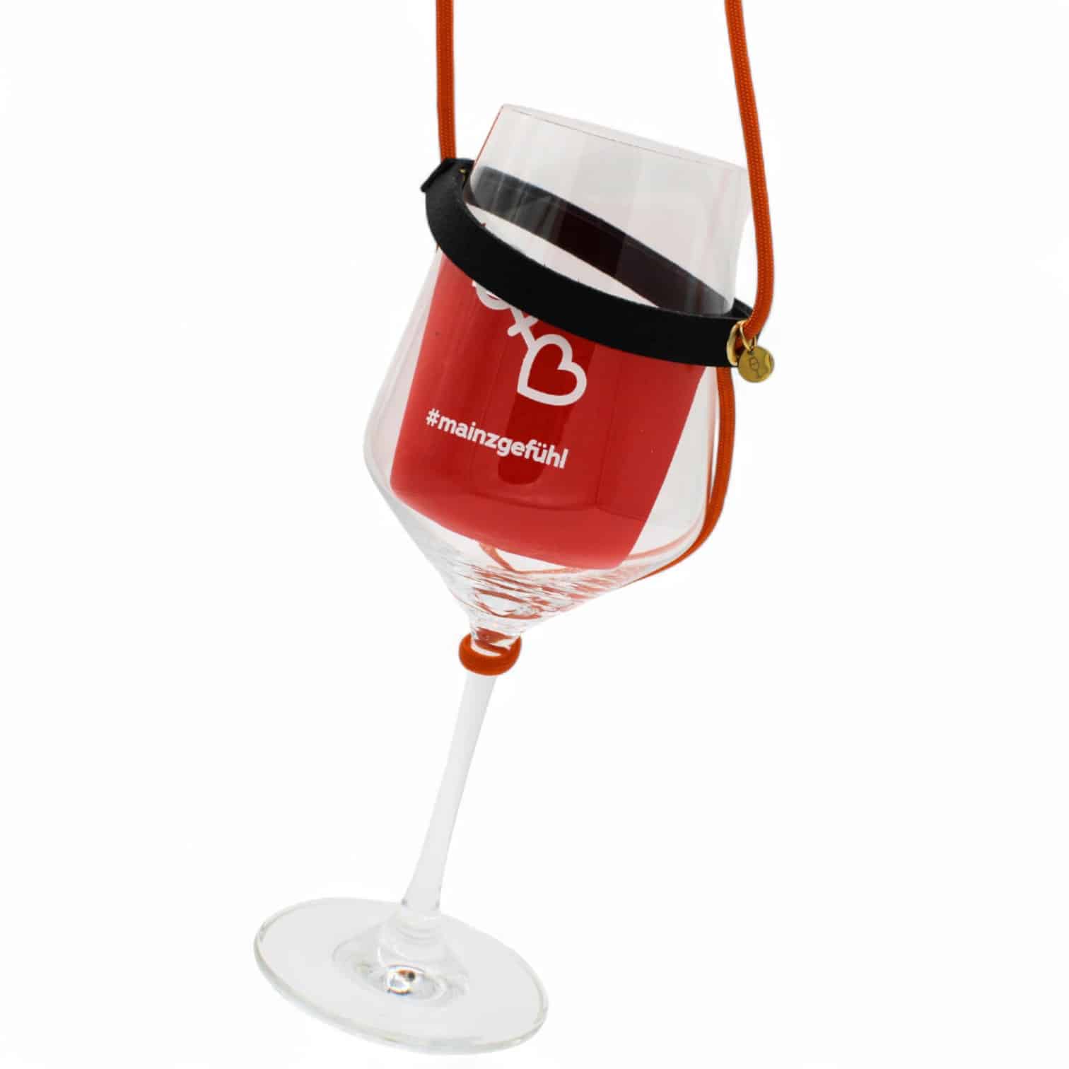 Einfach den Weinglashalter um den Hals hängen und los geht's!