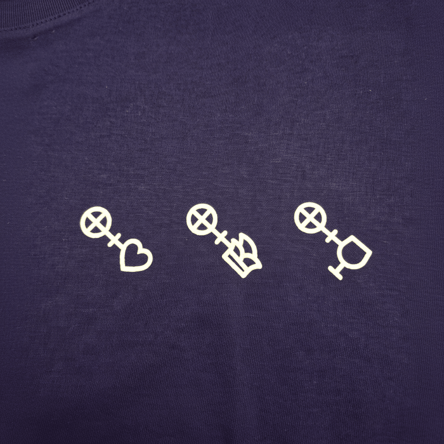 Der dezente #mainzgefühl-Schriftzug auf der rechten Hüfte wird durch drei ikonische Piktogramme auf der Brust ergänzt: Weinglas, Narrenkappe und Herz in Verbindung mit dem Mainzer Rad. Sie stehen für Genuss, Fastnacht und Herzlichkeit – Werte, die fest mit der Stadt verbunden sind.