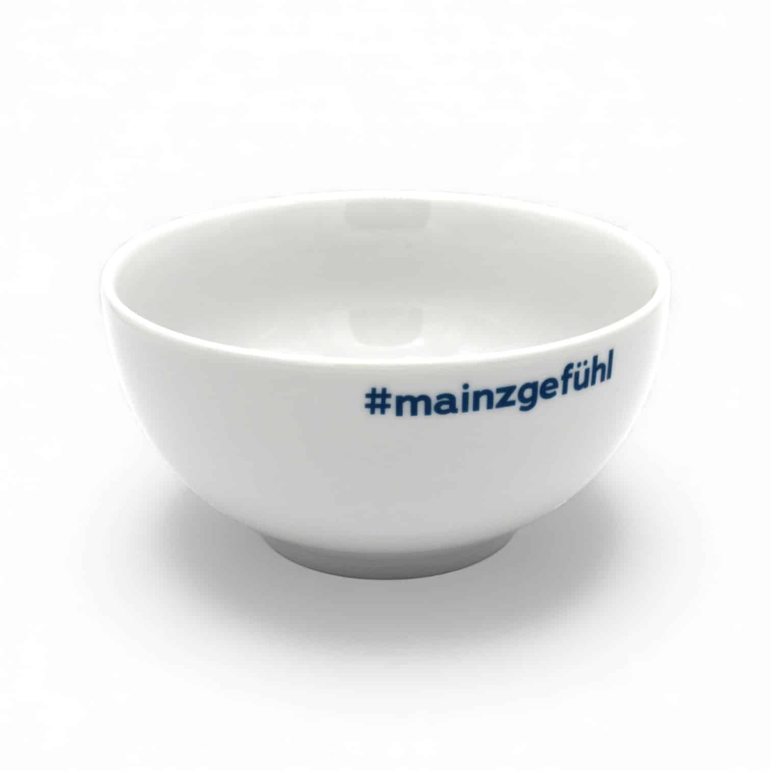 Innen lädt der humorvolle Hinweis „Es Brezel'sche hier noi dunke un ab in die Schnuud!“ dazu ein, den Dip stilecht zu genießen – natürlich mit frischen Brezeln. Auf der Rückseite rundet der blaue #mainzgefühl Schriftzug das Design ab und macht die Schale zu einem echten Hingucker auf jedem Tisch.